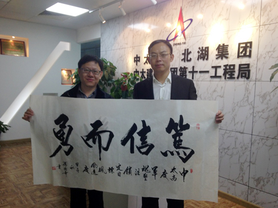 座談會結束后,傅強年會長有感而發(fā)為十一局題字“篤信而勇”,并附字“中太高度、軍魂塑鑄、鎖定目標、標楓速度”,以表達傅老對中太企業(yè)精神的感悟和贊頌。此外,傅強年會長還特別為十一局西藏項目贈詞《臨江仙.金爍布達拉》。(第十一工程局 供稿) |