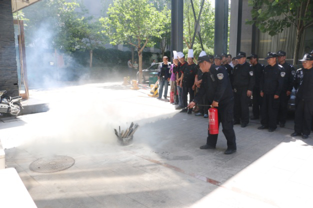 培訓結束后,在資產管理部總經理、義務消防隊隊長張志強的正確指導下,在中太院內現場進行了模擬疏散、逃生、救援和撲滅初期火災的演練工作。