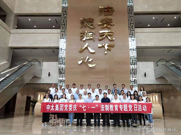 6月27日,在中國共產黨建黨98周年華誕到來之際,為弘揚黨的光榮傳統和優良作風,引導廣大黨員以習近平新時代中國特色社會主義思想武裝頭腦,激勵集團各級黨員領導干部和廣大黨員不忘初心、牢記使命,擔當作為、創先爭優,中太集團黨委組織集團公司各黨支部班子成員、優秀黨員代表、黨務工作者、入黨積極分子等到廊坊法制宣教中心參觀學習、開展“法制教育專題黨日活動”。集團黨委委員、紀委書記、控股集團副總裁吉士俊同志,集團黨委委員、建設集團副總裁胡衛東同志參加了活動。集團黨委辦公室主任、機關黨支部書記李文成同志帶隊主持活動。