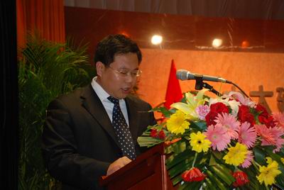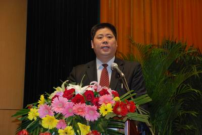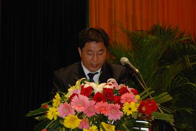 中太大廈二樓報告廳,鮮花吐艷,綠葉蔥蔥!叭尕瀼芈鋵崗V州年會精神,堅決完成09年任務目標”的大幅標語格外醒目。