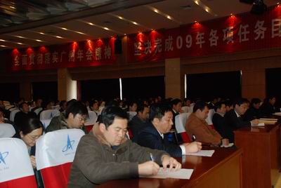 集團總裁張明禮作了《指標為綱,拼搏奮進,再鑄輝煌,為全面完成2009年董事局下達的經營目標而努力奮斗》的動員報告;副總經理趙廣懷,副總經理、天津辦事處主任李春陽,第一分公司經理江俊鵬,市場一部經理楊剛,安全生產部經理張國棟,分別圍繞各自分管的工作,就完成2009年度目標任務作了表態發言。