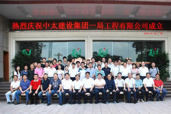 2009年7月2日上午,中太建設集團一局有限公司成立大會在廣州珠江賓館召開。集團總裁張明禮出席成立大會并講話。第三工程局局長羅新代表區域公司在會上做表態發言。會議由集團副總裁劉啟友主持。