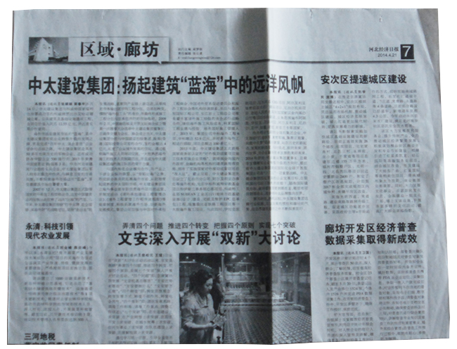 河北經濟日報報道了中太建設集團:揚起建筑“藍!敝械倪h洋風帆
