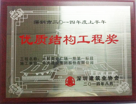 8月28日,深圳建筑業協會發布“關于表彰2014年度上半年深圳市優質結構工程獎的決定”公告。第二工程局承建的房建項目“六和商業廣場一期第一標段”榮獲深圳市2014年度上半年優質結構工程獎。