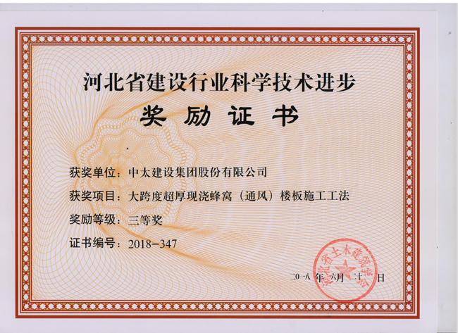 2018年河北省建設行業科學技術進步獎勵證書匯總