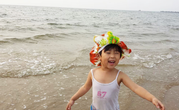 拍了照片后,突然讓我感覺像文清同學(xué)媽媽去澳門時住在海景房拍的海景照片! 看完海景就開始了匆忙的換泳衣準備下海,海景公寓的好處就是出來小區(qū)走上自己的棧道就是小區(qū)的私家海灘,非常干凈。近距離的接觸大海,吹著涼爽的風(fēng)(天氣多云,溫度在29度),讓我們一行幾個馬上開懷起來,每個人的興奮在臉上流露。孩子是最興奮的,跑到海邊上,任憑海浪一層層的打過來(這天風(fēng)并不大),孩子說:“媽媽,你看大海碰我了!”竟然用起了擬人句,把大海打過來的浪花比作在“碰”,這字用的多么美妙啊!我一邊欣賞著美景一遍在咂摸著這話,贊嘆著孩子的天真和用詞之妙。我們真的跳入大海浸泡的時候,舅舅在照顧著她,突然一個浪打在了孩子的頭上,孩子嚷著:“我要離開大海了”,這是在身邊的舅舅轉(zhuǎn)告我的,我在想孩子真是長大了,會表達很多個人的感情了,“啊,我要離開大海了”是一個陳述句,但是好像是表達著一種不舍得離開但是有不得已的感情,她很想在大海里再待一會,但是因為她被浪花打濕了頭發(fā),依她個人的膽量可能害怕了,所以說了句“啊,我要離開大海了”,孩子的成長讓我們自覺不自覺真切感受到了。然后她自己在海灘玩沙子,挖了大大的沙坑,每當海浪沖過來的時候,總是興奮的說:“媽媽大海幫我大忙了,還給其他家人也興奮的嚷嚷,大海可是幫了大忙了”。當我問她到底幫了什么忙時,她說:“大海給我的沙坑送來了水啊”(估計是她不用拿著自己的小碗去海邊舀水了)。我感嘆著女兒的天真浪漫和快樂興奮,內(nèi)心在想:帶著孩子出來玩玩是多么對的選擇,大自然的風(fēng)光的確是能刺激人的靈感,說了那么多令我平時聽不到的妙字妙語。這趟短途旅行意義非凡!
